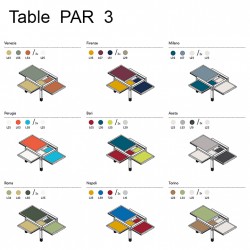 Table basse avec structure en hêtre massif et trois plateaux réversibles et amovibles. Choisir une couleur pour la structure en bois et ensuite les couleurs à choix pour les plateaux, (jusqu'à six coloris différents), dans la sélection Palette. Voir toutes les propositions de bois et de couleur sur: https://www.sculpturesjeux.com/fr/produits/catalogues/par3.html ou en magasin avec les échantillons de coloris.