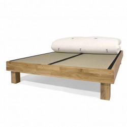Sobriété et inspiration asiatique épurée. Pour tatamis ou sommiers roulables ou traditionnels. Dimensions extérieures: + 16 cm Haut.: 18 cm. Design exclusif Makoura
